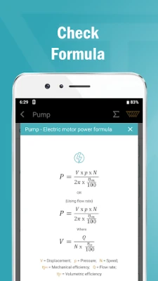 Versatilitatea acestei aplicații se extinde mult dincolo de cilindri. Secțiunea dedicată motoarelor hidraulice vă permite să calculați cu ușurință debitul, presiunea, deplasarea, viteza, cuplul și puterea. Pentru sistemele de pompare, veți putea determina deplasarea, debitul, puterea motorului electric și eficiența totală a pompei. Mai mult, instrumentul este esențial pentru analiza pierderilor de presiune în jurul orificiilor, oferind date cruciale pentru optimizarea sistemelor. Nu în ultimul rând, secțiunea de conducte facilitează calculul vitezei fluidului, al ariei secțiunii transversale și al numărului Reynolds, având posibilitatea de a utiliza atât vâscozitatea absolută, cât și cea cinematică, oferind o perspectivă completă asupra dinamicii fluidelor.