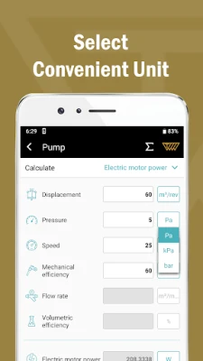 Concepută pentru a satisface nevoile diverse ale utilizatorilor, aplicația permite efectuarea tuturor calculelor atât în unități de măsură metrice, cât și imperiale. Flexibilitatea se manifestă și prin posibilitatea de a afișa valorile de intrare și ieșire în sub-unități preferate, ajustabile chiar și înainte de inițierea calculelor. Pentru a simplifica și mai mult fluxul de lucru, funcționalitatea de compatibilitate inversă pentru anumiți parametri (forță, timp și viteză) în zona cilindrilor asigură o experiență de utilizare extinsă și adaptabilă. Finalizați-vă analiza cu ușurință, copiind rezultatele în clipboard sau partajându-le direct prin e-mail, transformând această aplicație într-un partener indispensabil pentru orice proiect hidraulic.