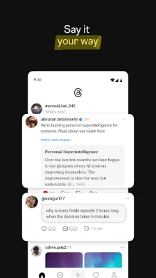 Pe Threads, vocea ta contează. Lansează o nouă discuție pentru a-ți expune gândurile, reflecțiile și ideile într-un mod personal, având controlul deplin asupra celor care pot interacționa cu conținutul tău. Alătură-te mișcării în secțiunile de răspunsuri, reacționând la comentariile pline de umor, analize profunde sau simple observații ale creatorilor pe care îi apreciezi. Este locul unde îți găsești tribul, te conectezi cu oameni care împărtășesc aceleași pasiuni și contribui la o rețea de conversații semnificative. Îți poți personaliza setările pentru a gestiona cine îți vizualizează conținutul, cine poate răspunde la discuțiile tale sau cine te poate menționa. Conturile pe care le-ai blocat pe Instagram se transferă automat, iar Threads aderă la aceleași Ghiduri ale Comunității pentru a asigura un mediu sigur și respectuos.