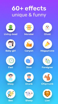 **Video Voice Changer** îți deschide porțile către un univers sonor vast, oferind acces la peste 60 de efecte vocale personalizate pentru a da viață oricărei idei. Fie că dorești să suni ca un gigant impunător, un bebeluș adorabil, o femeie matură, un bărbat sobru, un robot mecanic, un extraterestru misterios sau chiar un personaj dintr-un film de groază, opțiunile sunt practic nelimitate. Mai mult, ai control deplin asupra detaliilor fine: modifică viteza, volumul și tonalitatea vocii, aplică filtre avansate precum high-pass sau low-pass, sau adaugă o notă de distorsiune pentru efecte dramatice. Poți începe prin a înregistra direct în aplicație sau importând fișiere audio existente, totul pentru a-ți modela vocea exact cum îți imaginezi, cu o precizie uimitoare.