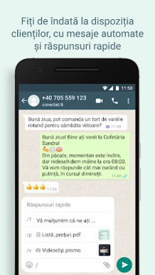 WhatsApp Business aduce experiența familiară WhatsApp, îmbunătățită cu instrumente esențiale pentru afaceri. Lucrează mai inteligent, clădește încredere și extinde-ți businessul. Beneficiază de mesagerie internațională și apeluri gratuite, plus funcții de organizare, răspunsuri rapide automatizate și mesaje offline pentru clienți.